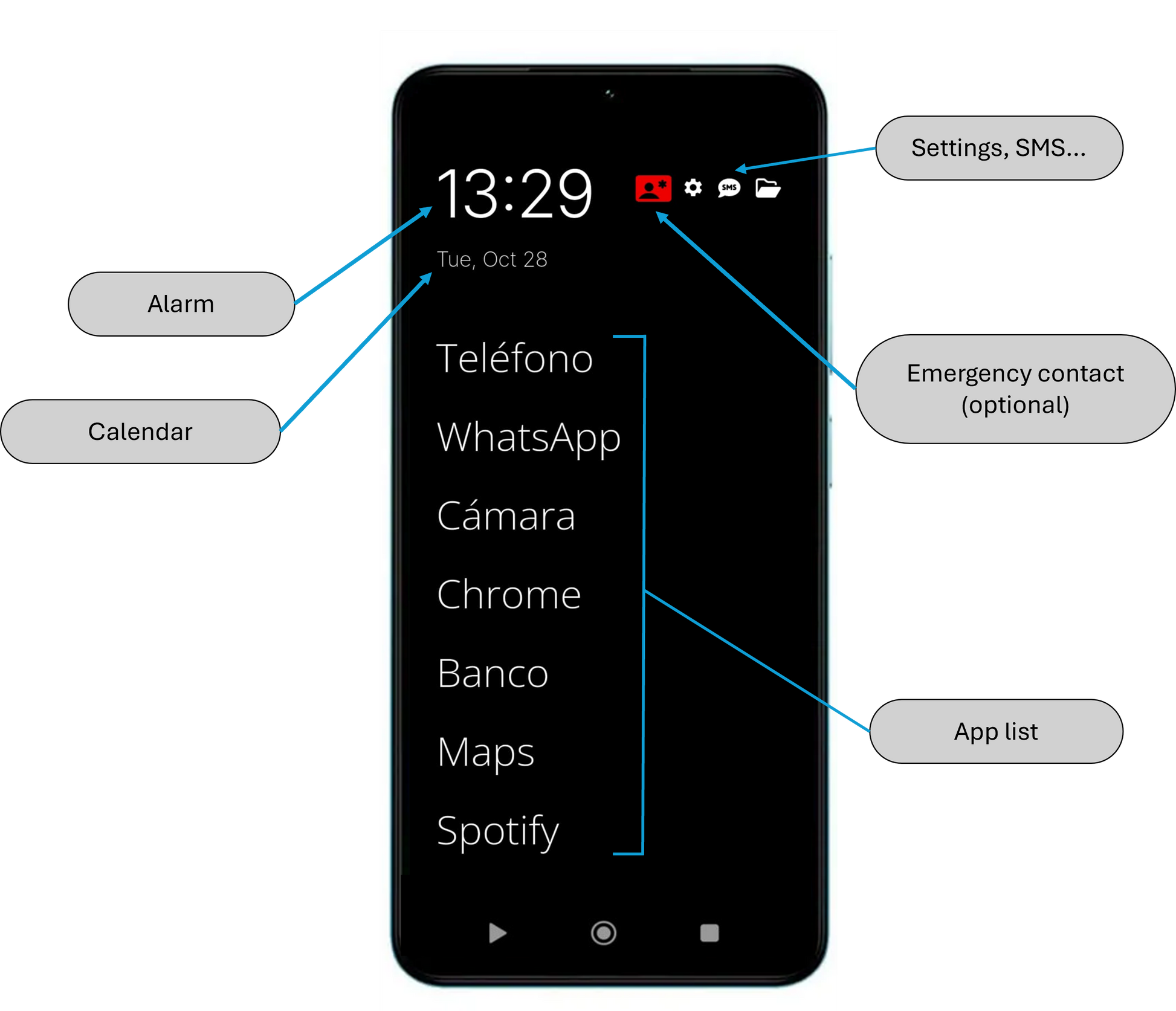The phone comes pre-installed with our FocusLauncher® software, designed to get the most out of your device: Instead of functioning like a conventional smartphone with hundreds of stimuli, icons, and notifications, the FocusPhone focuses on what really matters. With a minimalist interface, you'll only have access to the most important apps , such as calls, WhatsApp, or your banking app.